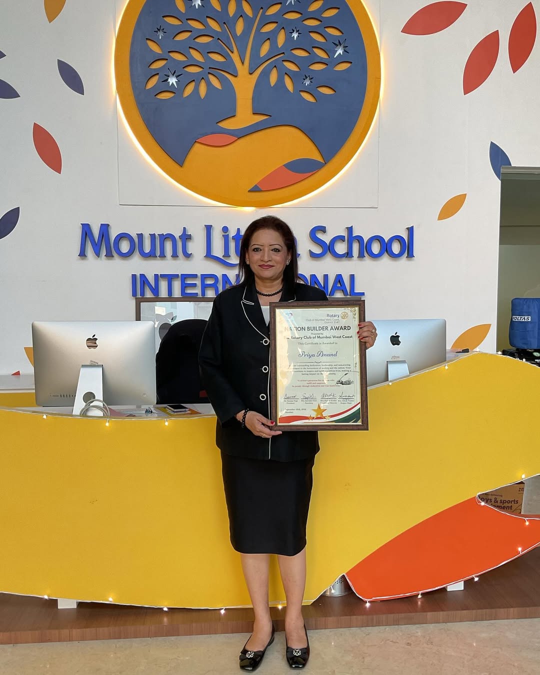 Our Head of School, Ms Priya Anand was awarded the prestigious Nation Builder Award 2024 which was given by 'Rotary Club of Mumbai West Coast'. She was one of the 215 awardees selected from 879 nominations Pan India and was felicitated on Sept 28th, 2024.